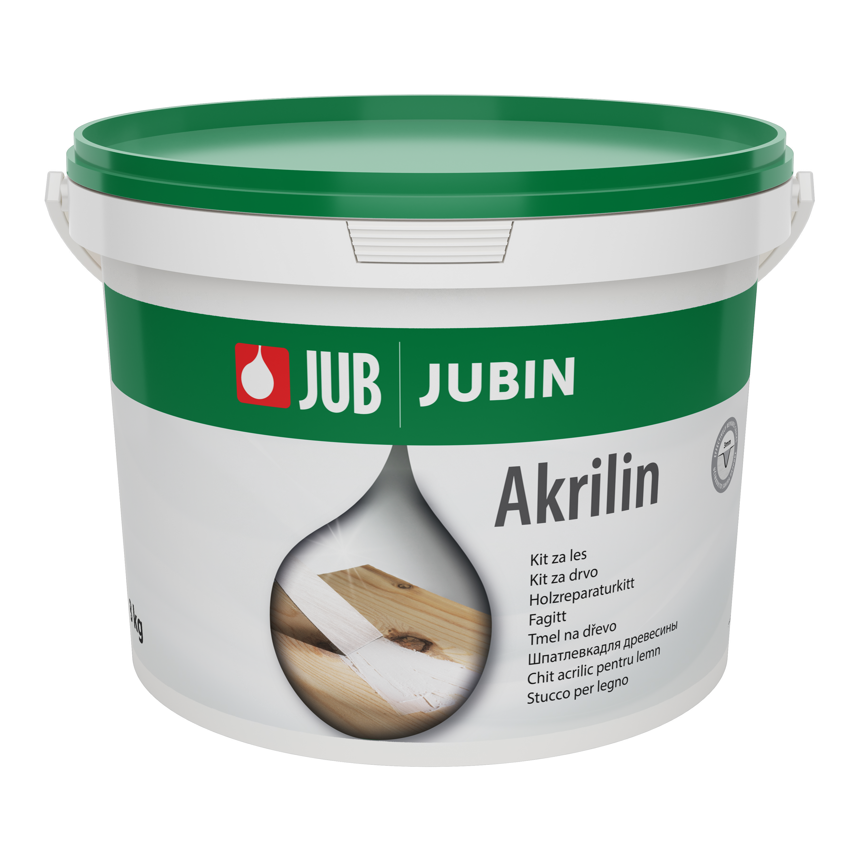 Az JUBIN AKRILIN akril kötőanyagok, mikronizált töltőanyagok és speciális adalékanyagok diszperzióján alapuló kiegyenlítő anyag. Masszív fából készült termékek és hasonló felületek felületi hibáinak és sérüléseinek kijavítására szolgál a felület végleges kidolgozását –